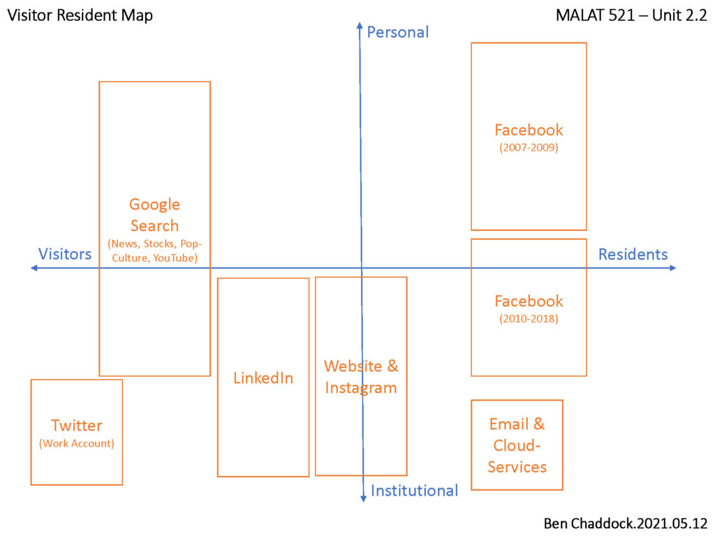 Of course, the use of the internet has also changed significantly over the past 15 years, and the process of completing this Visitor-Resident typology assignment reminds me of a family saying, “if you write it, it’s forever.”